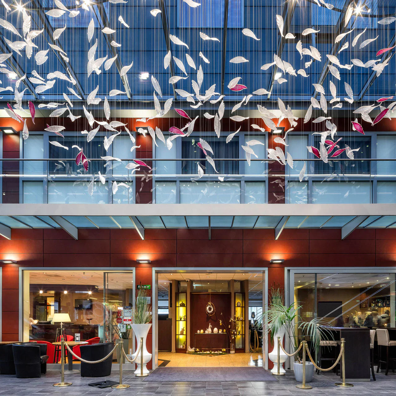 The luminaire creates a sense of lightness and ethereal presence within the space, as if the feathers were carried by the wind, creating a central focal point for the space.
